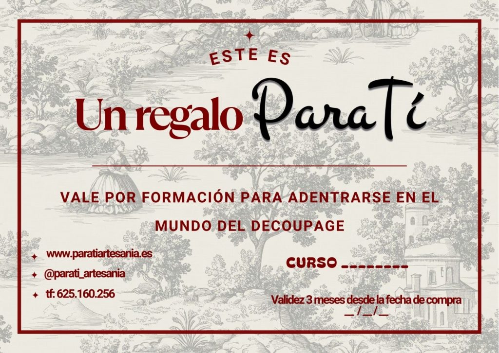 Publicado en Ruth Huertas19/03/2026Trustindex verifica que la fuente original de la reseña sea Google. Espe es encantadora. Pendiente de todas y te enseña todos los truquitos para que salga perfecto y aunque se te dé mal las manualidades y no tengas paciencia, consigues unos resultados sorprendentes. Viene genial para desconectar y dedicarte un ratito.Publicado en maite espejo17/03/2026Trustindex verifica que la fuente original de la reseña sea Google. Me regalaron un taller de decopauge y me ha encantado!!! Espe genial, una artista que te explica todo paso por paso y hace que disfrutes al máximo. Yo siempre he sido un poco desastre para las manualidades y pensé que no iba a ser capaz. Pues ha sido todo un éxito! Estoy encantada con mis bandejas!! Regalo de cumple top!!Publicado en lourdes rafael17/03/2026Trustindex verifica que la fuente original de la reseña sea Google. Ha sido una experiencia maravillosa, no pensé que iba a gustarme tanto esta técnica. El curso se hace muy ameno y se te pasa el tiempo volando. Gran parte del mérito lo tiene quien lo imparte, Esperanza, es encantadora, muy buena profesora y tiene mucha pacienciaPublicado en ELENA NAVARRO OTON17/03/2026Trustindex verifica que la fuente original de la reseña sea Google. Me ha encantado, repetimos seguro. Que maravilla lo que un puedo llegar a hacer si está bien asesorado por Espe, gran profesional, mejor persona. 🩷 No lo dudéis!!! Tenéis que aprendes con ella🥰Publicado en Lourdes Benitez Govantes21/01/2026Trustindex verifica que la fuente original de la reseña sea Google. Publicado en Luis Gutierrez15/01/2026Trustindex verifica que la fuente original de la reseña sea Google. Estas navidades compré unas fuentes de cristal muy bonitas y muy bien terminadas, cuidado hasta el más minimo detalle, y muy bien presentadas. Sin duda, un regalo único y diferente que triunfó, además del maravilloso trato con Esperanza, la artista. Estoy seguro de que repetiré.Publicado en IRIS PAEZ LUNA15/01/2026Trustindex verifica que la fuente original de la reseña sea Google. Ya he comprado y encargado varias cosas de Para tí artesanía, y siempre todo genial. Muy bonito, con gusto y un trabajo artesanal en el que se cuidan los detalles. Un acierto seguro ante cualquier regalo que haya que hacer. ¡Super recomendable!Publicado en Mercedes perez14/01/2026Trustindex verifica que la fuente original de la reseña sea Google. Me encanta todo lo que hacéis, son cosas preciosas y muy originales. Deseando hacer nueva compra.Publicado en Natalia Puga Cals26/11/2025Trustindex verifica que la fuente original de la reseña sea Google. Publicado en Susana Navas25/11/2025Trustindex verifica que la fuente original de la reseña sea Google. Esperanza es un artista. Tiene cosas ideales para la casa: bandejas, cuencos, fuentes, lámparas... todo muy bonito y con mucho gusto, tanto para uno mismo como para regalar. Además te asesora sobre el mantenimiento de las piezas decoradas por ella misma para que te dure sin problema. Totalmente recomendable