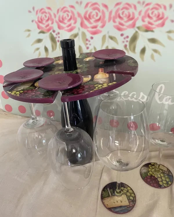 Soporte para botella de vino + copas personalizable