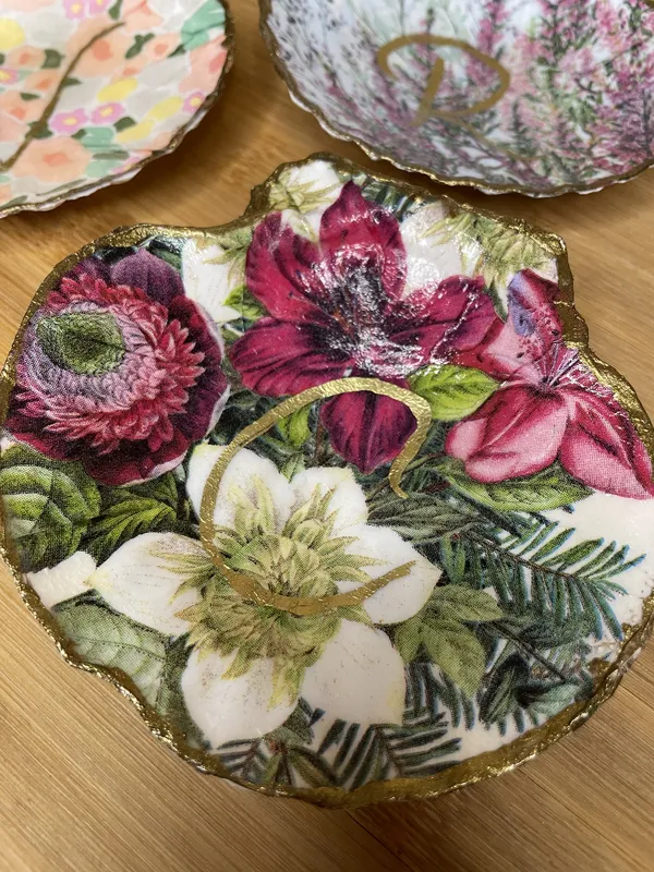 Cada pieza es diferente, lo que garantiza que recibirás un producto 100% artesanal y exclusivo, con el encanto natural de la concha y el acabado creativo del decoupage.