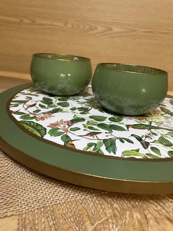 • Uso decorativo recomendado: si se utilizan como platos decorativos o bandejas, procura no colocar objetos demasiado pesados para mantener intacto el acabado en decoupage.