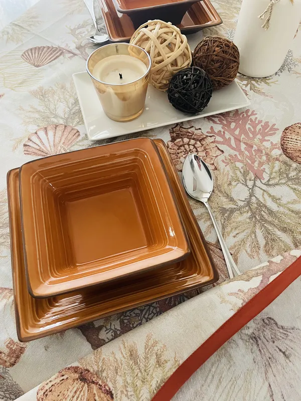 Mantel resinado modelo Mar, filo color teja, medidas 1,40 x 1m