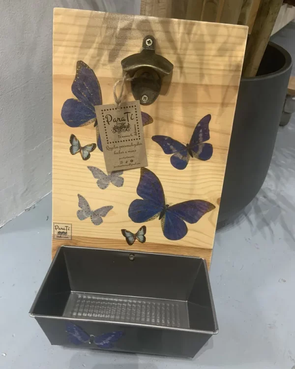 Cada tabla está trabajada a mano con la delicada técnica del decoupage, que aporta un diseño exclusivo y lleno de personalidad, convirtiendo un accesorio cotidiano en un elemento decorativo único. Su acabado artesanal la convierte en un complemento ideal para quienes valoran los detalles creativos en su hogar.
